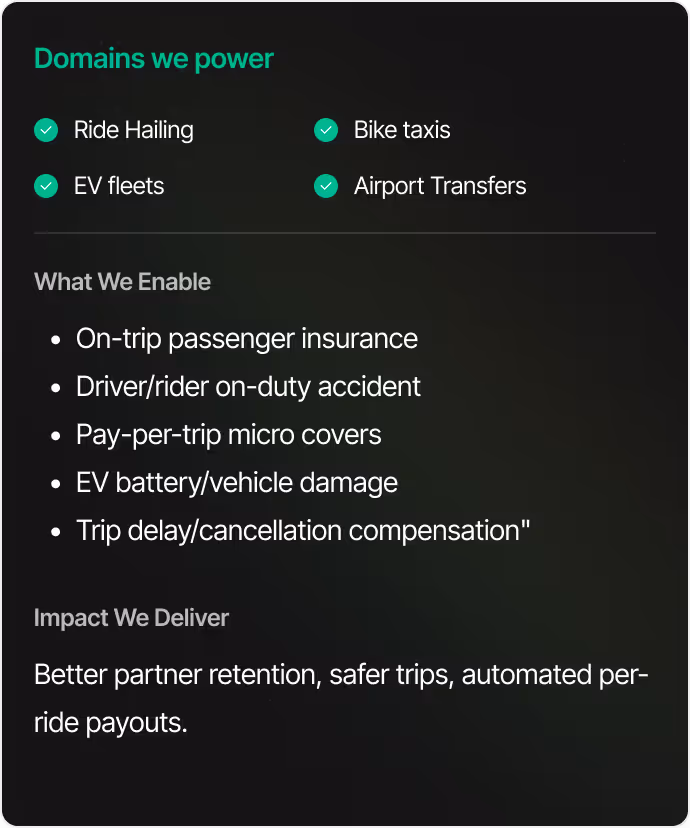Delivering seamless protection across bookings, visas, mobility rides and travel payments with higher attach, lower drop-offs and automated claims.